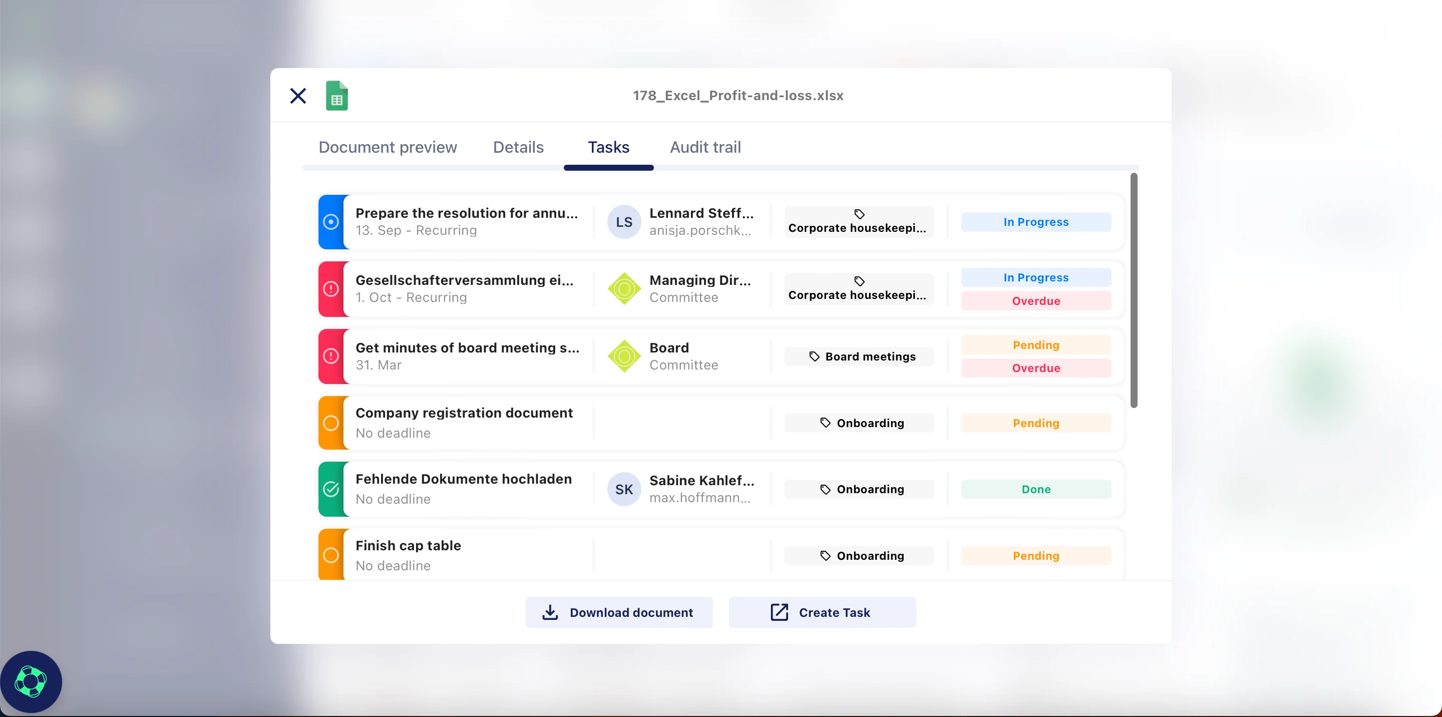 Create document-realated tasks and track their status and deadline
